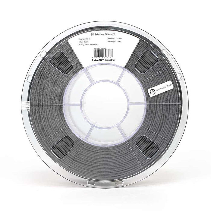 Raise3D Industrial PPA CF Filament ist ein kohlefaserverstärktes Verbundfilamentmaterial auf Basis von PPA (Polyphthalamid oder Hochleistungs-/Hochtemperatur-Nylon). Dank seiner Hochleistungs-Nylon-Matrix hat dieses Verbundfilament im Vergleich zu anderen Nylon-Filamenten überlegene mechanische und thermische Eigenschaften.