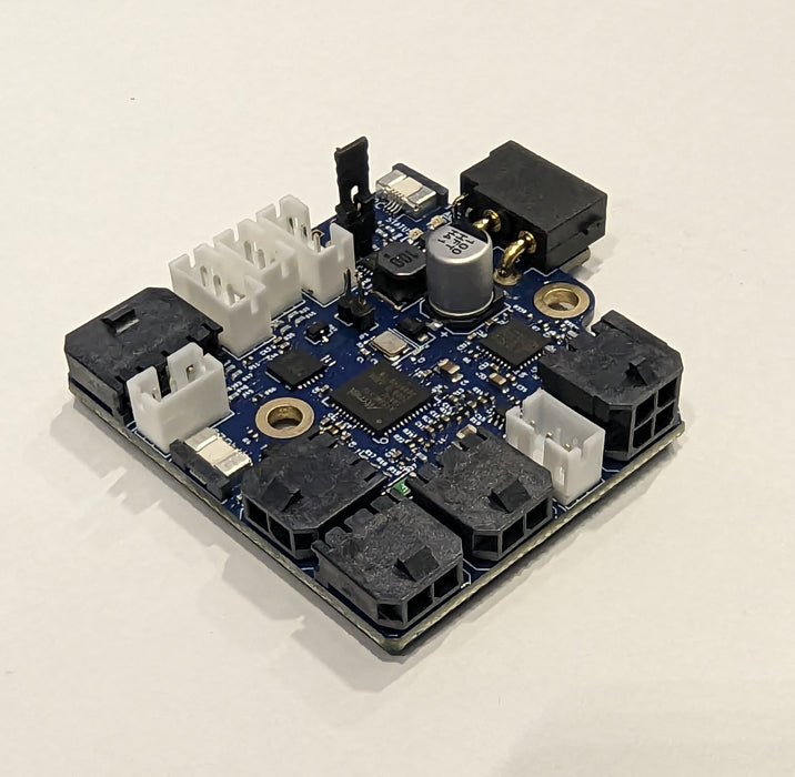Das Duet 3 Roto Toolboard ist so konzipiert, dass es sich problemlos in den E3D Revo Roto Extruder sowie die Revo Hotend-Heizelemente und Temperatursensoren integrieren lässt. Die folgenden Komponenten können mithilfe der von E3D gelieferten Steckverbinder für eine einfache Verkabelung angeschlossen werden: Extrudermotor, ein zwei- oder dreiadriger Kühlkörperlüfter, das Revo-Heizelement und der Thermistor sowie der sekundäre Temperatursensor. Zusätzlich können ein 2-, 3- oder 4-adriger Bauteillüfter, 4 IO-Ports für Endstopps, Filamentmonitor und Z-Sonde, ein Neopixel-Anschluss sowie eine Duet 3 Scan-Z-Sondenspule angeschlossen werden.